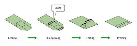 Remplissage-> Collage -> Pliage -> Pressage Pourquoi Choisir nous? Caractéristiques Principale de l'Encolleuse de Bas de Sac a Main ZB50B: