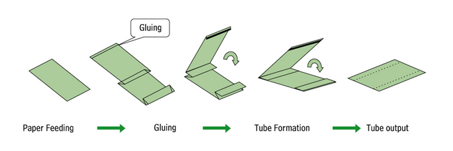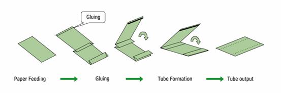 Remplissage -> Collage -> Formage de Tube -> Sortie Spécifications Principales :